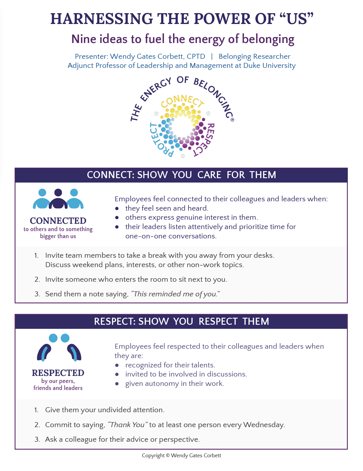 I’m Wendy Gates Corbett - bestselling author, belonging researcher, speaker, Duke University leadership professor, and creator of The Energy of Belonging™ Framework